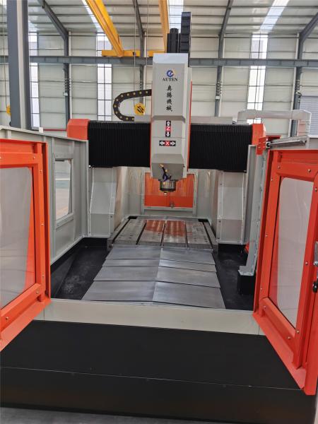 The equipment is integrally cast, mainly composed of worktable, fixed beam gantry, movable sliding saddle, drilling and milling power head, automatic lubrication device, protective device, circulating cooling device, digital control system, electrical system, etc. Rolling hard rail pair support and guidance, precision lead screw pair drive, the machine tool has high positioning accuracy and repeat positioning accuracy.